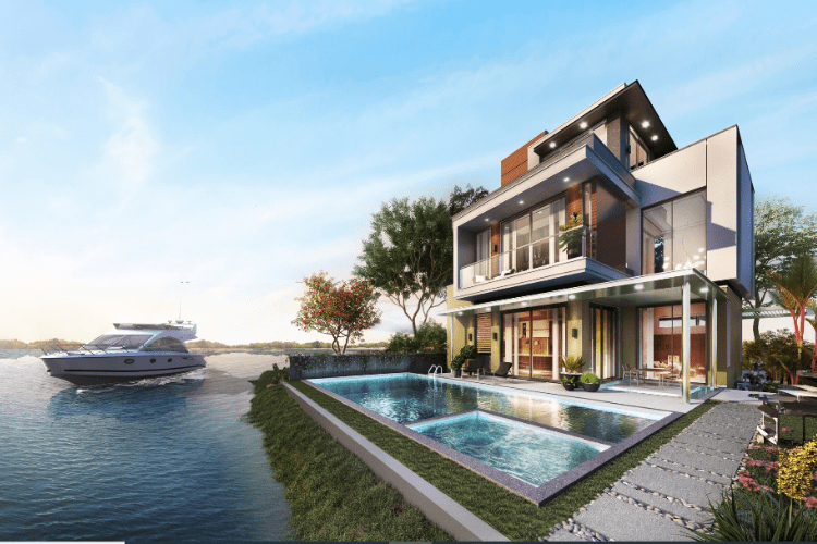 Tổng diện tích 300m2, 2 mặt tiền sông và đường, hướng Đ và T, khu dân trí cao, view sông